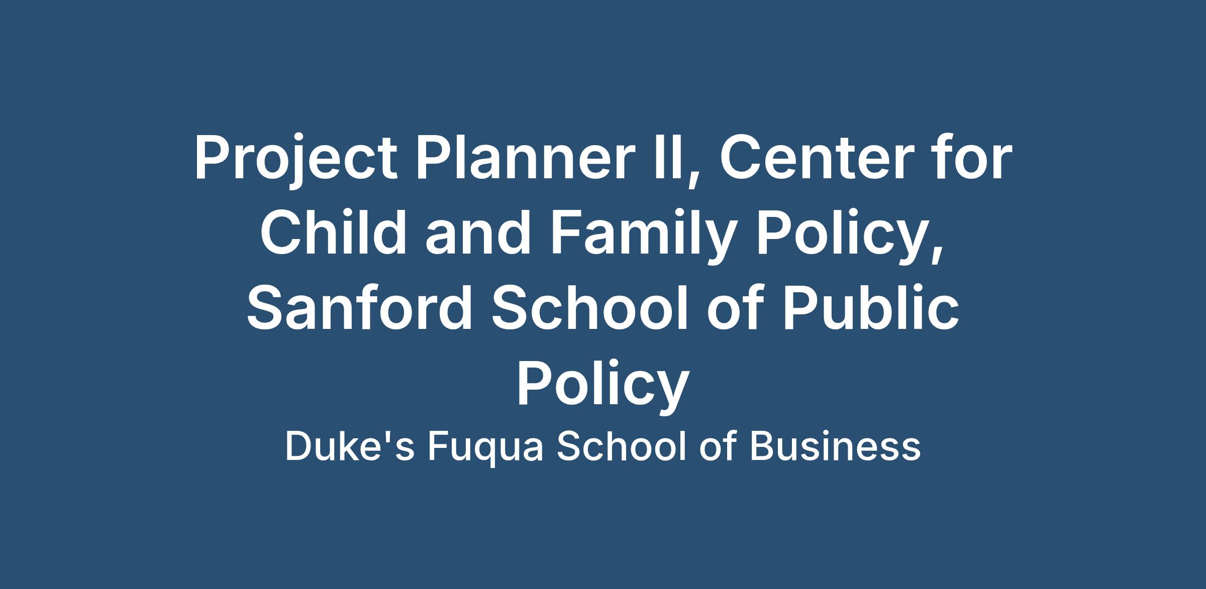 The Project Planner II leads complex, cross‑sector research, planning, and implementation efforts that translate evidence into practice and policy. Working closely with Duke faculty, state agency partners, community organizations, and internal teams, you will move critical work forward by applying human‑centered design, data‑informed strategy, and rigorous project management.