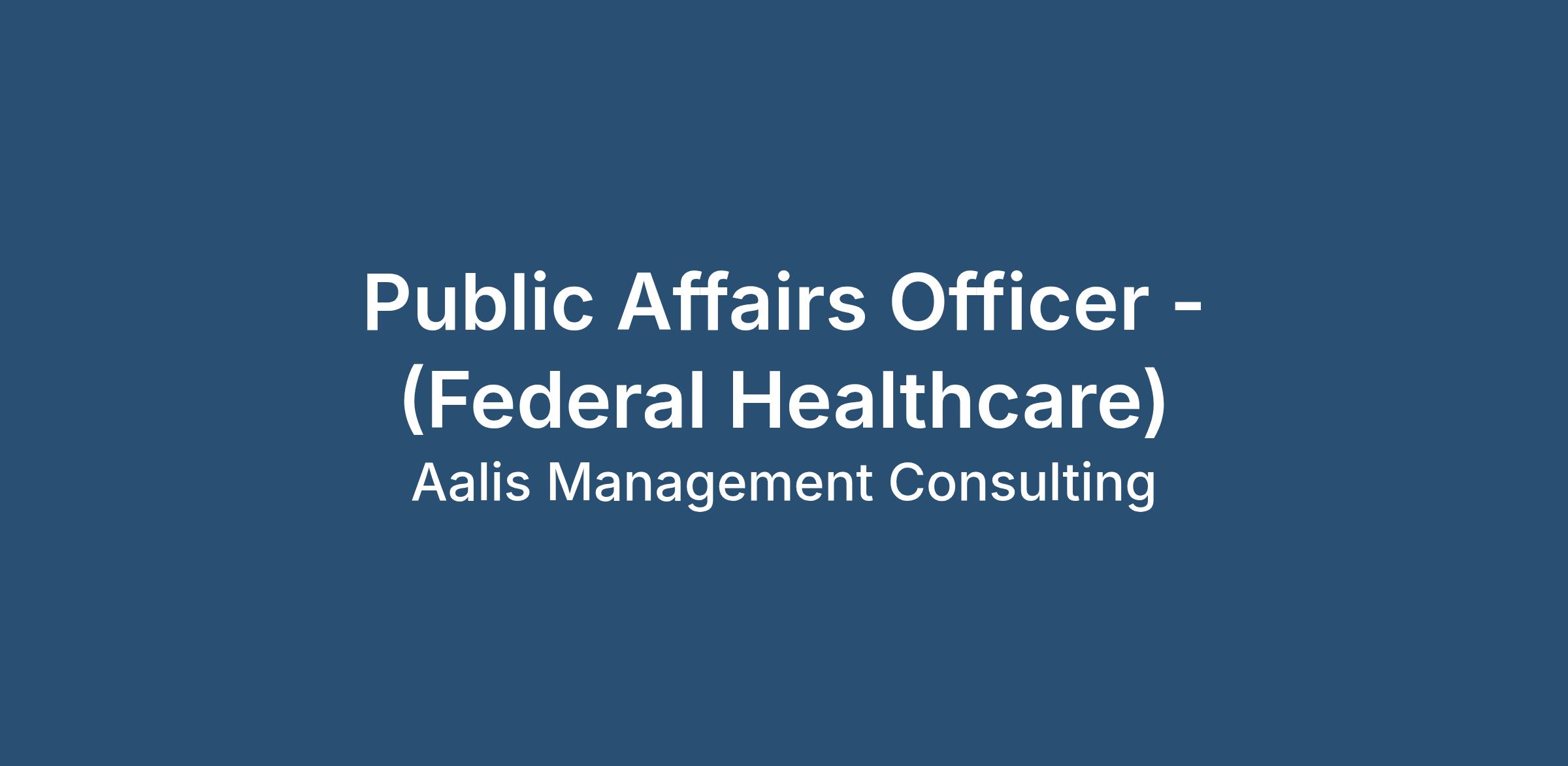 Aalis Management Consulting is seeking a Public Affairs Officer to support strategic communications and leadership messaging.