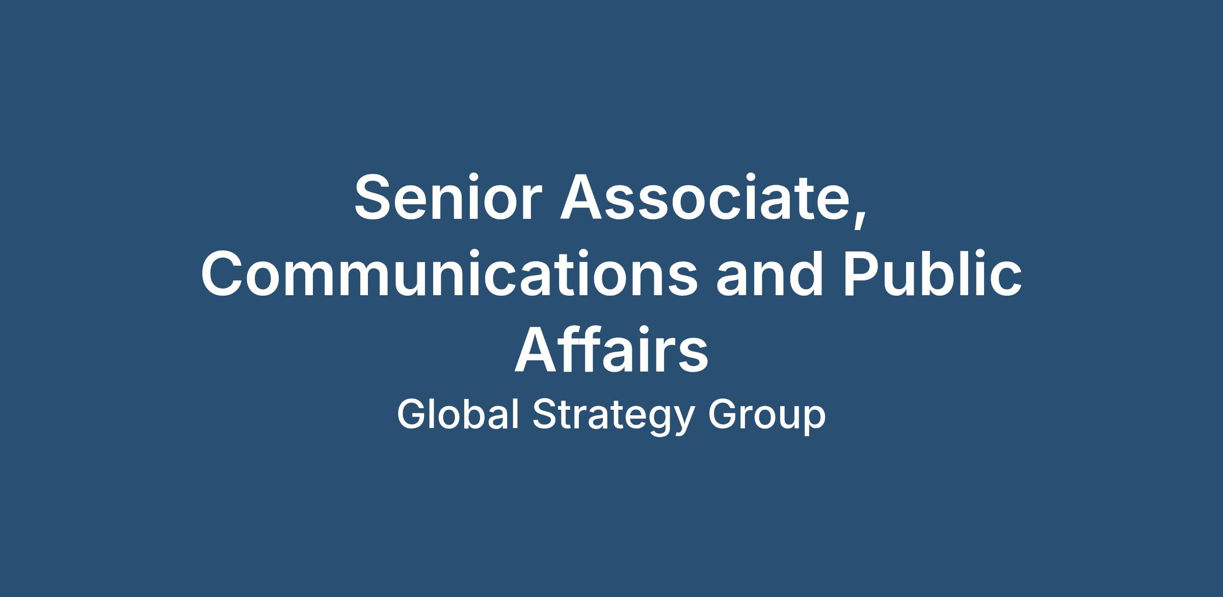 Are you interested in communications, media relations, and writing? If so, Global Strategy Group is looking for you! We are seeking a Senior Associate to join our growing Communications & Public Affairs Practice. Successful candidates will have a strong interest in working with our corporate clients, as well a desire and ability to work in a fast-paced, dynamic, and demanding environment.