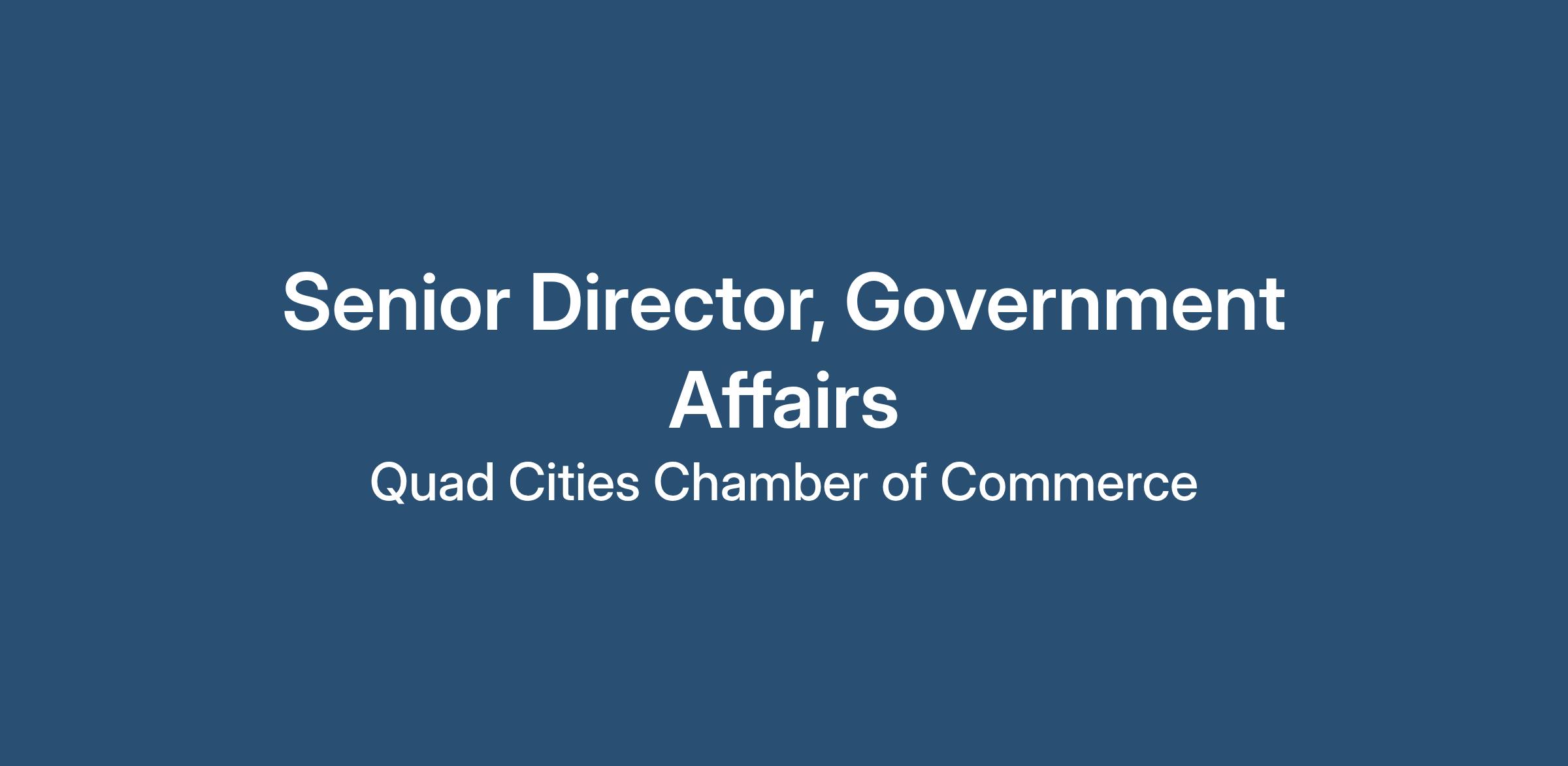 Summary: The Senior Director, Government Affairs will provide expert non-partisan government affairs services to support business and economic growth in the Quad Cities region. This position is responsible for directing all areas of advocacy, public policy, and political affairs. The ideal candidate will have the opportunity to lead meaningful initiatives, elevate the voice of the business community, and make a tangible impact across a bi-state region.