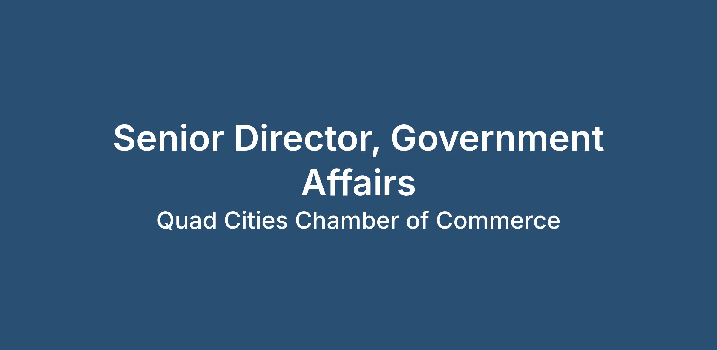 Summary: The Senior Director, Government Affairs will provide expert non-partisan government affairs services to support business and economic growth in the Quad Cities region. This position is responsible for directing all areas of advocacy, public policy, and political affairs. The ideal candidate will have the opportunity to lead meaningful initiatives, elevate the voice of the business community, and make a tangible impact across a bi-state region.