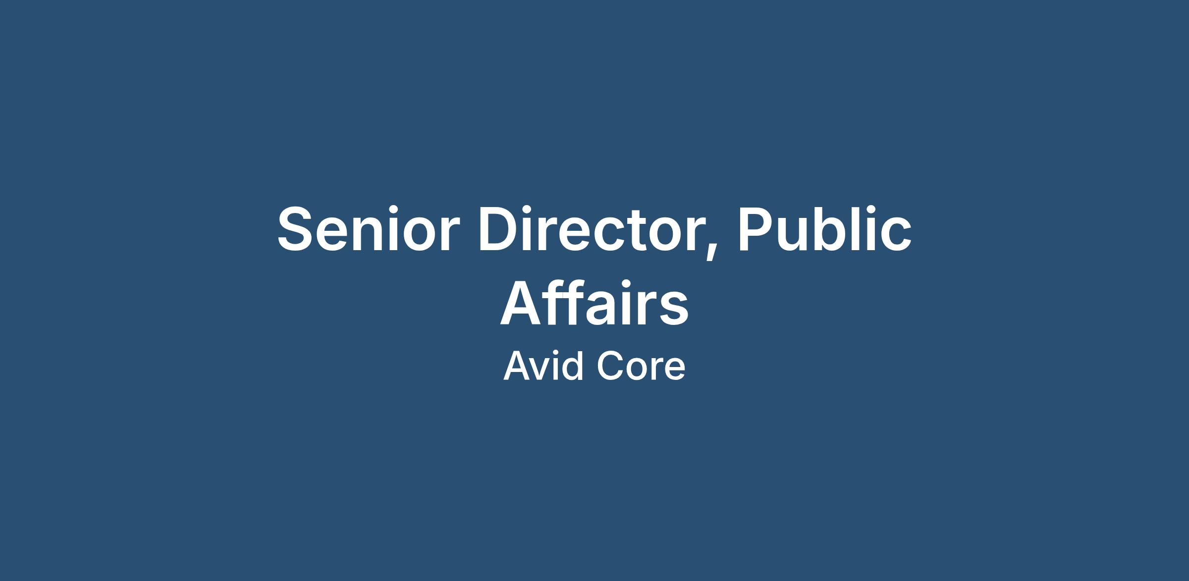 Avid Core is seeking a Senior Director, Public Affairs to lead strategic communications initiatives in support of federal clients and national-level programs. This role will provide executive-level counsel on messaging strategy, oversee media engagement and reputation management, and lead communications initiatives related to national security, defense, and public policy issues.
