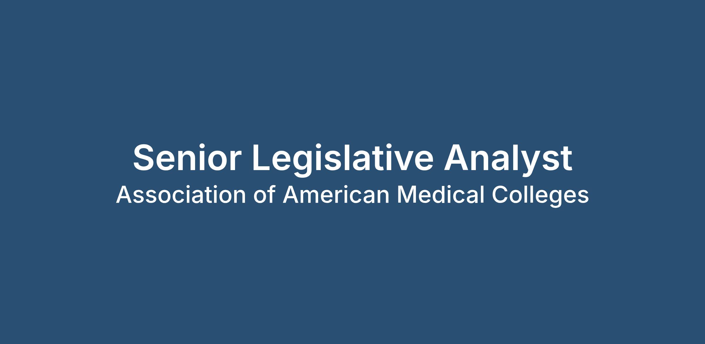 The Senior Legislative Analyst serves as a senior subject-matter expert within Government Relations, independently and collaboratively advancing AAMC’s federal advocacy priorities related to the budget, medical research, public health, Veterans Affairs, and higher education. The role leads and supports legislative analysis and advocacy strategy on specific issues within the portfolio, represents AAMC to Congress, federal agencies, and national coalitions, and serves as primary staff lead for major advocacy partnerships in the portfolio. The position exercises significant judgment in complex, evolving policy environments and regularly advises senior leadership on legislative strategy and organizational priorities.