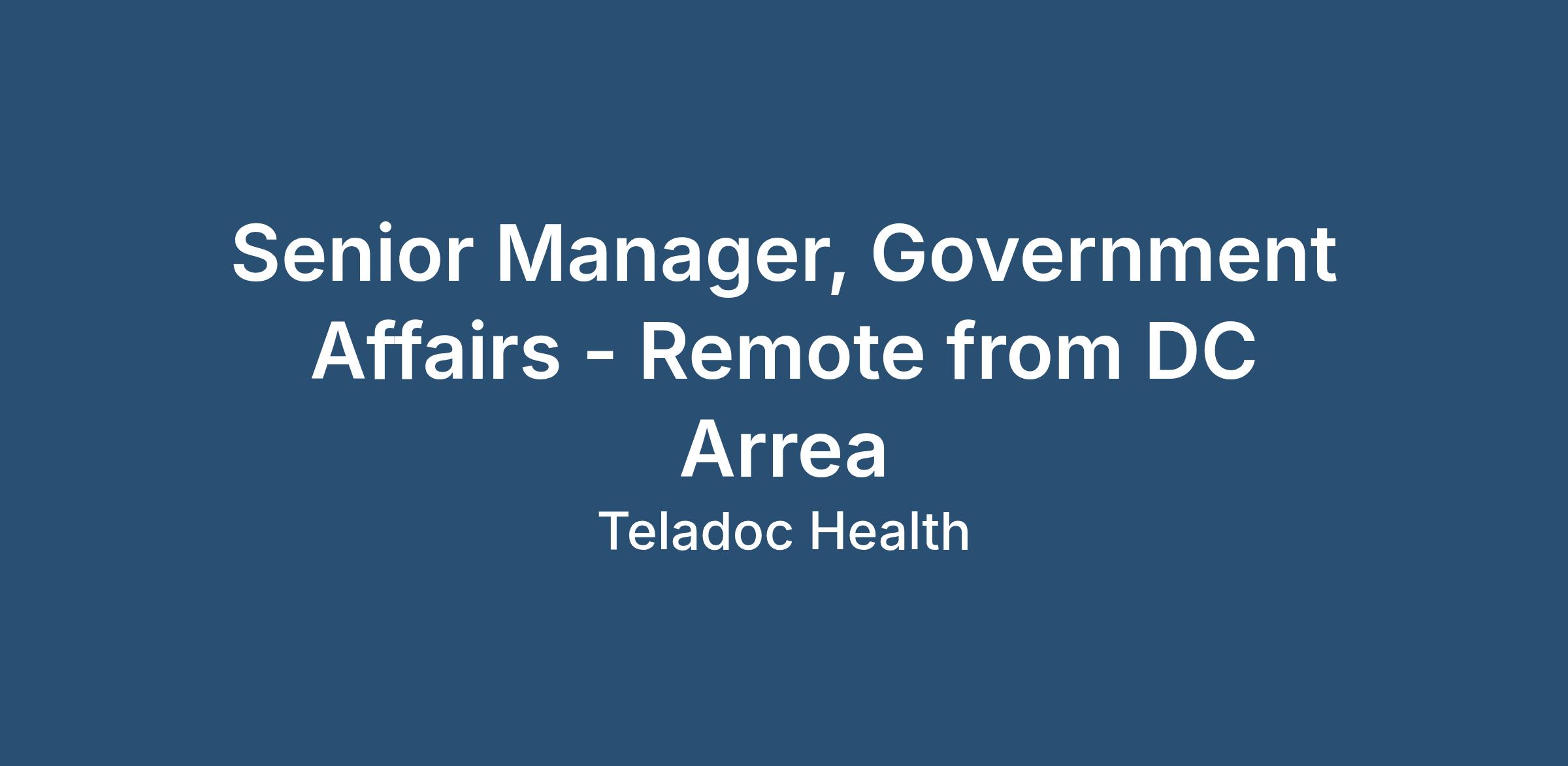 Take a leadership role in supporting Teladoc’s growth, value proposition, and market differentiation by serving as a key liaison with Capitol Hill and U.S. federal agencies. The Senior Manager, Government Affairs drives health care innovation in the legislative and regulatory environment and plays a critical part in the development and execution of our federal government relations policy and advocacy.