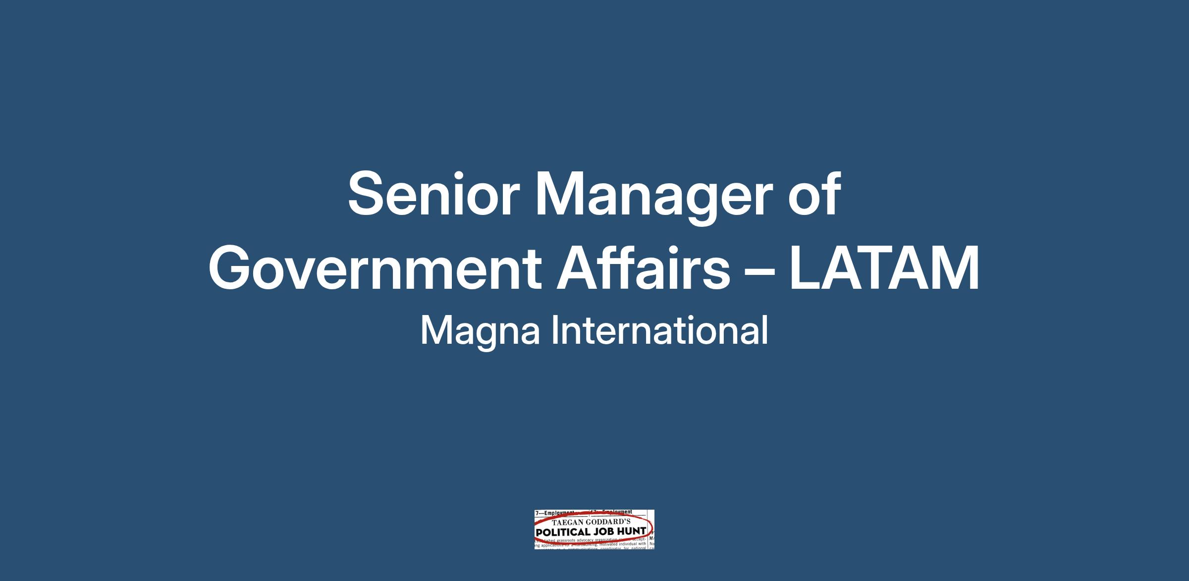 Minimum 10 years of experience in government affairs and with policy-making institutions; robust Latin American regional public affairs experience including policy advocacy and corporate reputation at the national and local level.