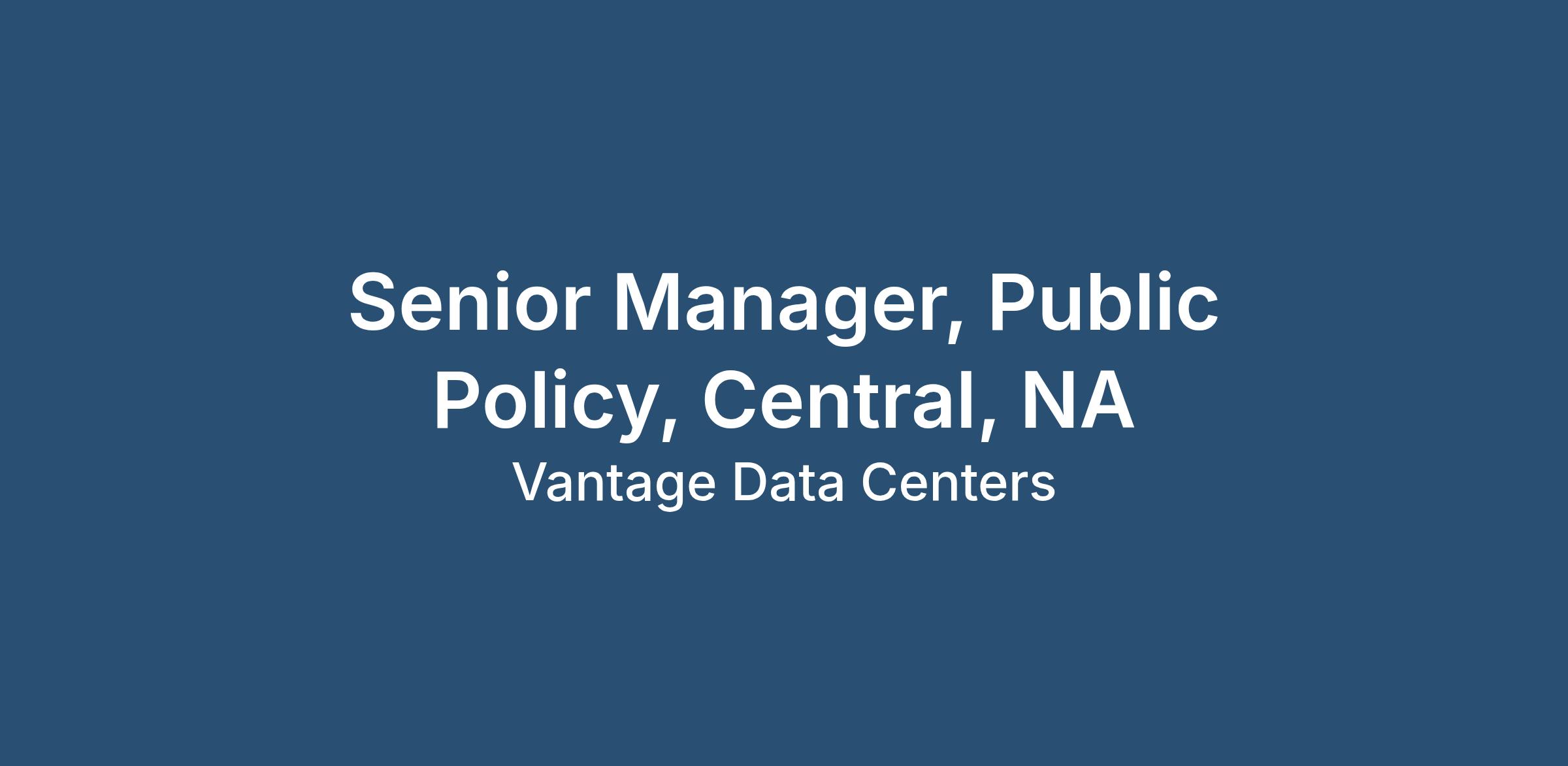 The Public Policy Senior Manager -Central, North America will be primarily responsible for implementing and reporting on the company’s state and local public affairs program in key markets including Texas, Wisconsin and additional states. The Public Policy Senior Manager will partner with various internal stakeholders to determine Vantage’s policy priorities, establish relationships with key stakeholders, and engage at the state and local level to advocate for Vantage’s position on a variety of issues, including energy, sustainability, tax, economic development, and land use. This role will be an integral part of driving forward end-to-end market success as Vantage grows in the region. This includes supporting initial market intelligence and land selection, through the development and across the operation of our data centers. This role will also be responsible for establishing regulatory and policy environments that support Vantage’s economic development, access to energy, community engagement, and sustainability strategies.