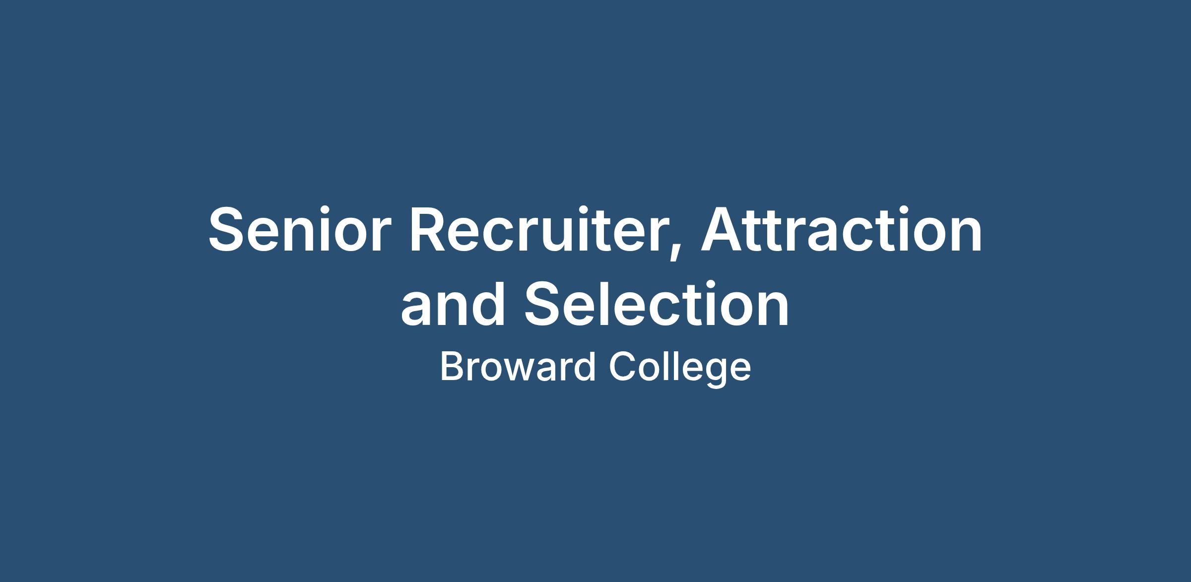 Senior Recruiter, Attraction and Selection