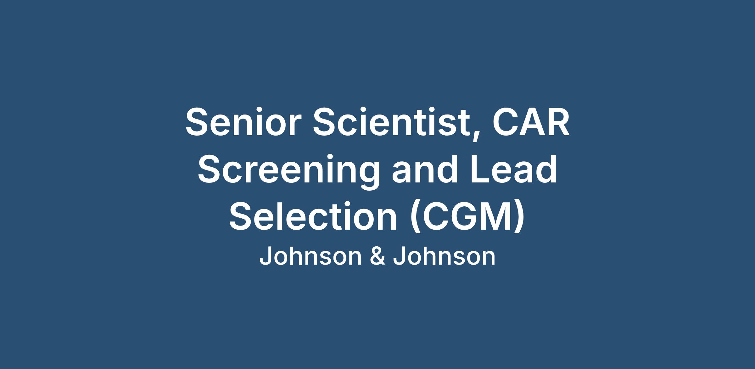 We are searching for the best talent for a Senior Scientist, CAR Screening and Lead Selection (CGM), to be based in Cambridge, MA.