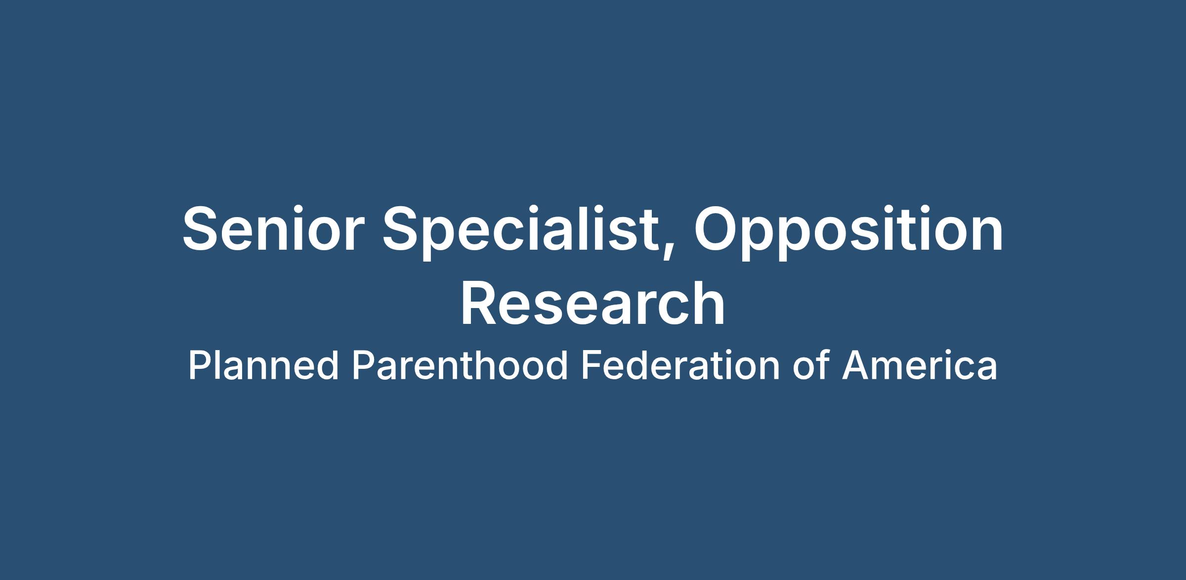 - The Senior Specialist, Opposition Research focuses on the collection, validation, and organization of information related to opposition actors, networks, and narratives in order to mitigate risks to Planned Parenthood Federation of America (PPFA), its affiliates, and sexual and reproductive health care. The Senior Specialist integrates opposition research with broader risk information related to procurement, personnel, events, and facilities.