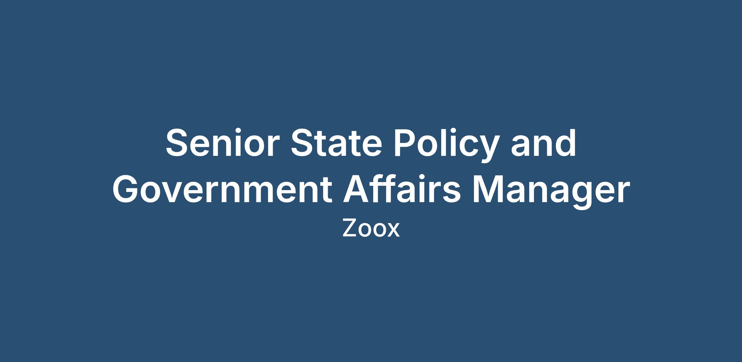 The Policy and Regulatory Affairs team at Zoox is a cross­-functional organization responsible for advancing Zoox's public policy and regulatory goals and creating a proactive safety culture across the company.  Within the Policy and Regulatory Affairs team, the State Policy team works closely with state regulators and policymakers to foster transparency, trust, and confidence in Zoox.