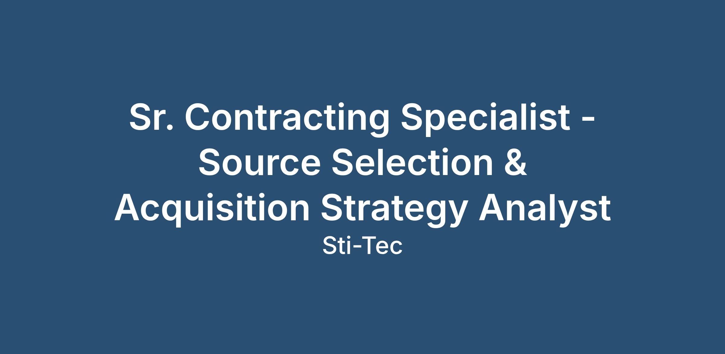 Applicants selected may be subject to a U.S. Government security investigation and must meet eligibility requirements for access to classified information. STI-TEC is an equal opportunity employer and values diversity. Employment is decided on the basis of qualifications, merit, and business need. All qualified applicants will receive consideration for employment without regard to race, color, religion, sex, national origin, disability, protected Veteran status, gender identity and sexual orientation. This policy applies to all terms and conditions of employment, including recruiting, hiring, placement, promotion, termination, layoff, transfer, leaves of absence, compensation and training. If you need assistance or an accommodation due to a disability, you may contact us at [email protected] or you may call us at 1+918.583.9900. *This job posting is to identify potential candidates for positions in order to respond to a request for proposal. This job posting, including but not limited to, qualifications, duties, compensation and benefits, is subject to change based on the terms and conditions of the awarded contract and is contingent on STI-TEC being awarded the contract. |