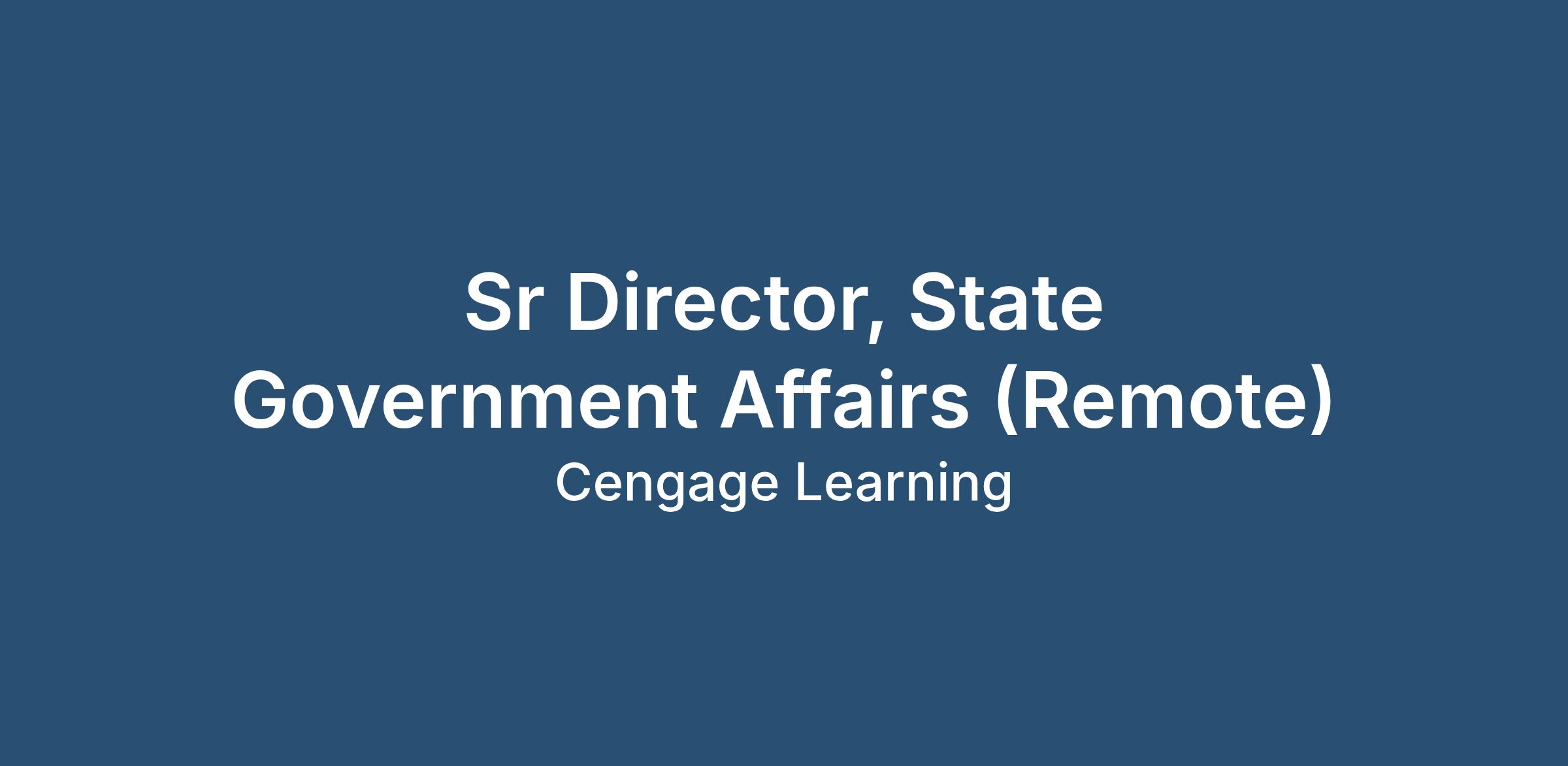 The Senior Director, State Government Affairs will be responsible for promoting, growing, and protecting Cengage business interests across the United States. This role is a key leader in the organization, helping to define how the company analyzes, understands, navigates, and shapes policy at the state level. In this position, you will lead and direct operational contract-lobbying activities and develop a proactive engagement strategy in support of Cengage's policy and lobbying objectives. You will use existing relationships and develop new relationships as a representative of the company and its business objectives and in furtherance of Cengage’s policy goals. You must have strong project management, communications, political, interpersonal, and organizational skills. This role will report to our General Counsel and work in partnership with business leaders, sales leaders, corporate communications and other team members.
