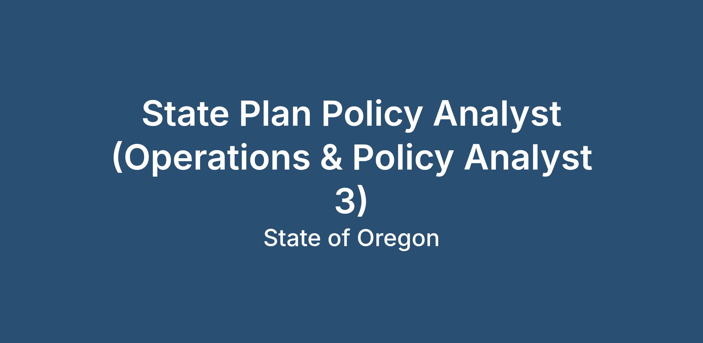 Opportunity Awaits, Apply Today! – State Plan Policy Analyst (Operations & Policy Analyst 3)