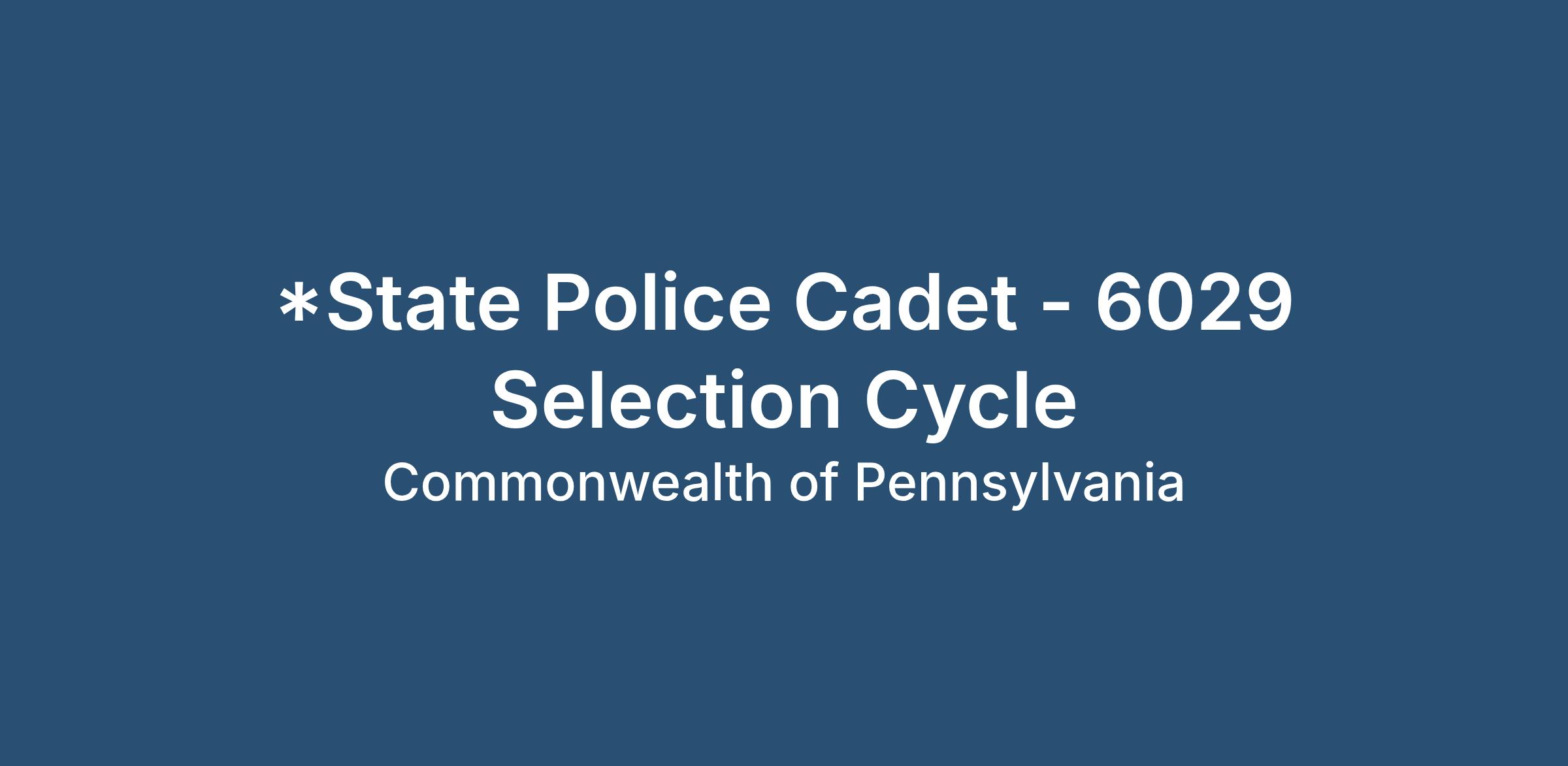 *State Police Cadet - 6029 Selection Cycle