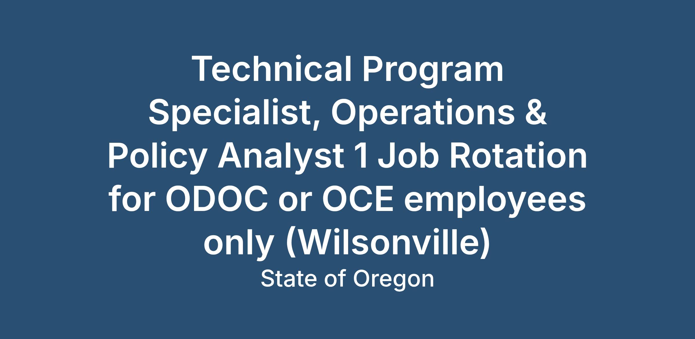 Technical Program Specialist, Operations & Policy Analyst 1 Job Rotation for ODOC or OCE employees only (Wilsonville)Job Description: