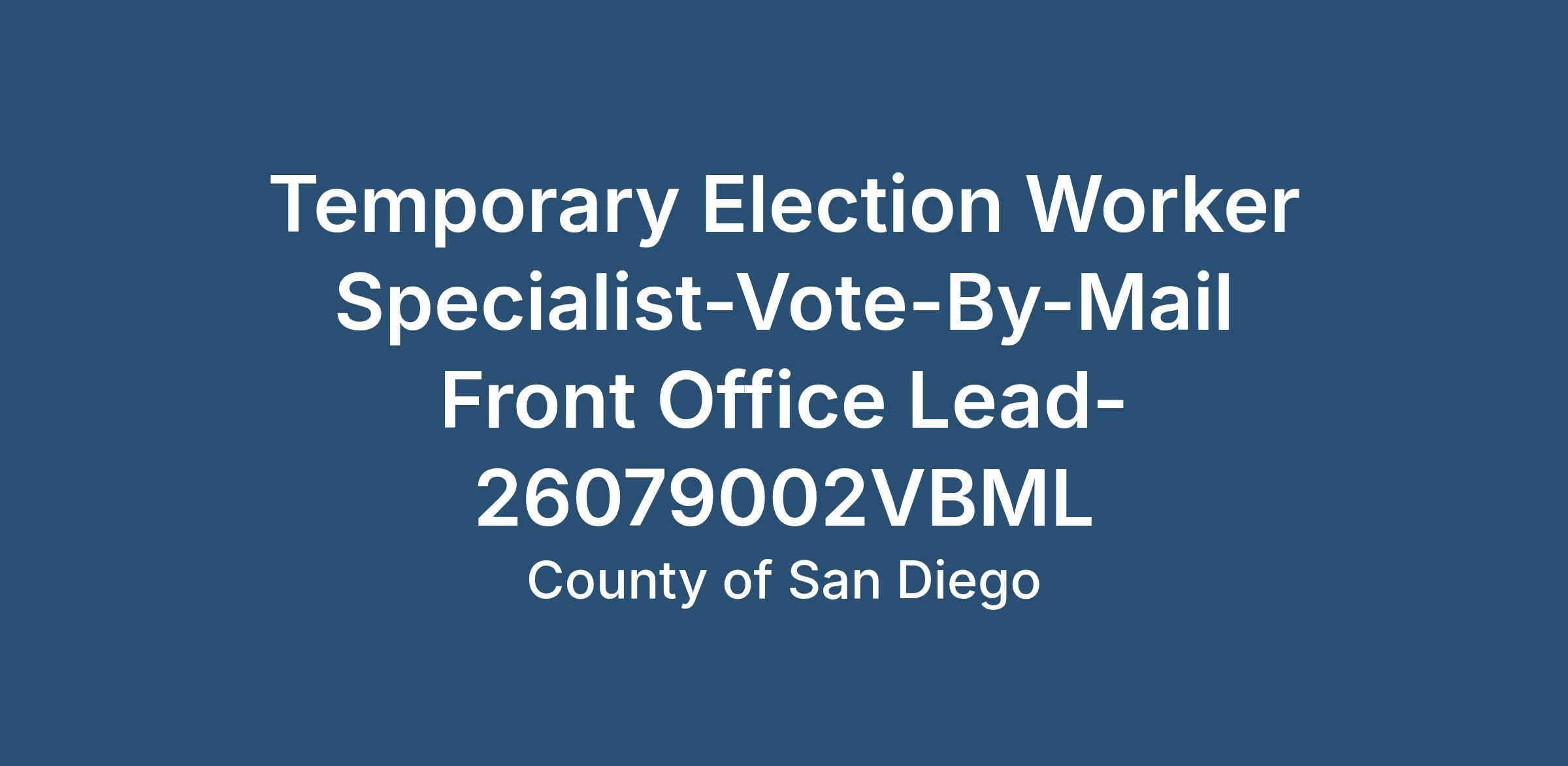 Temporary Election Worker Specialist-Vote-By-Mail Front Office Lead-26079002VBML