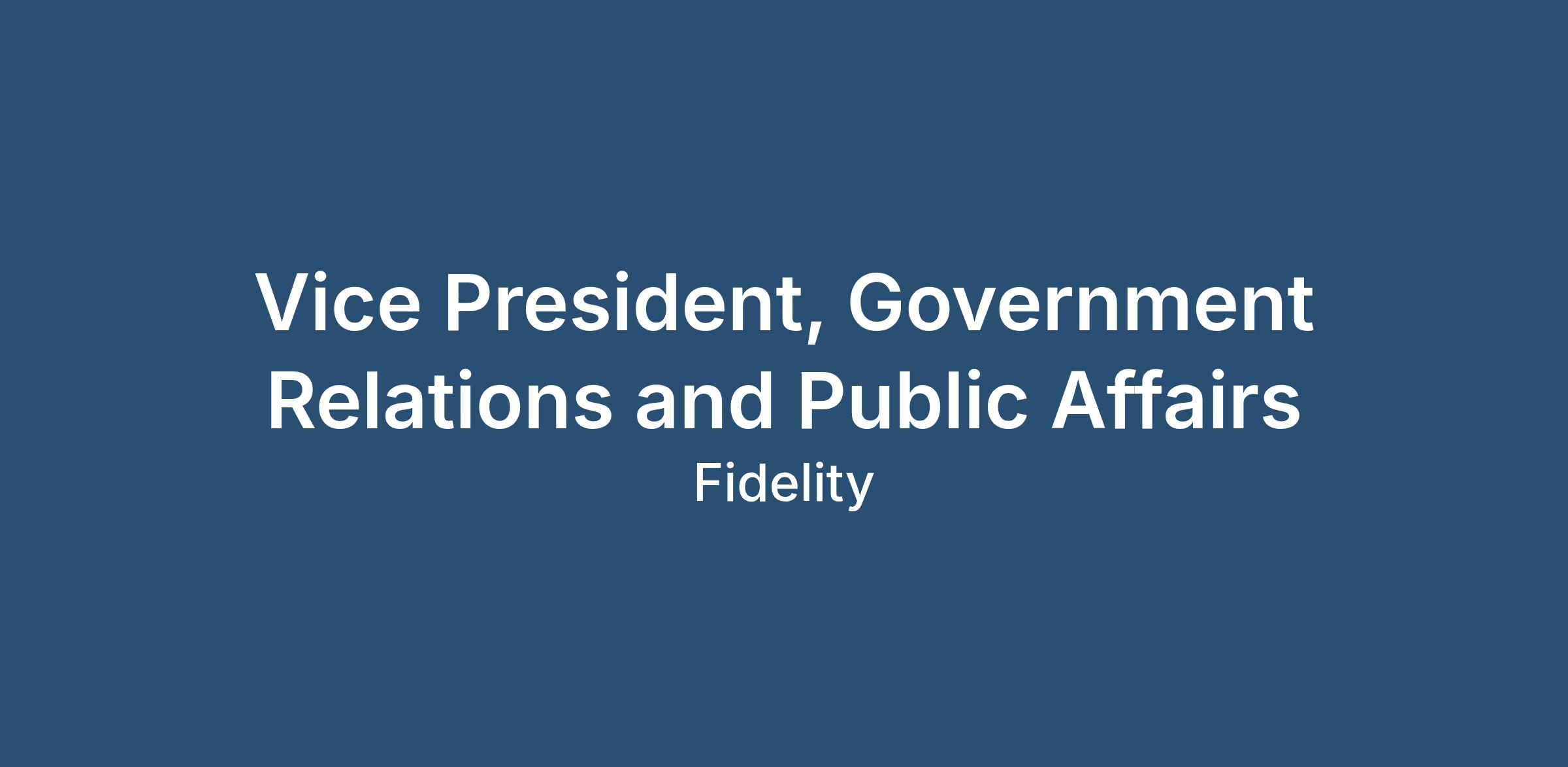 Do you have government relations and public affairs experience to represent Fidelity in the community with government officials, regional business leaders, trade groups, and non-profit organizations?
