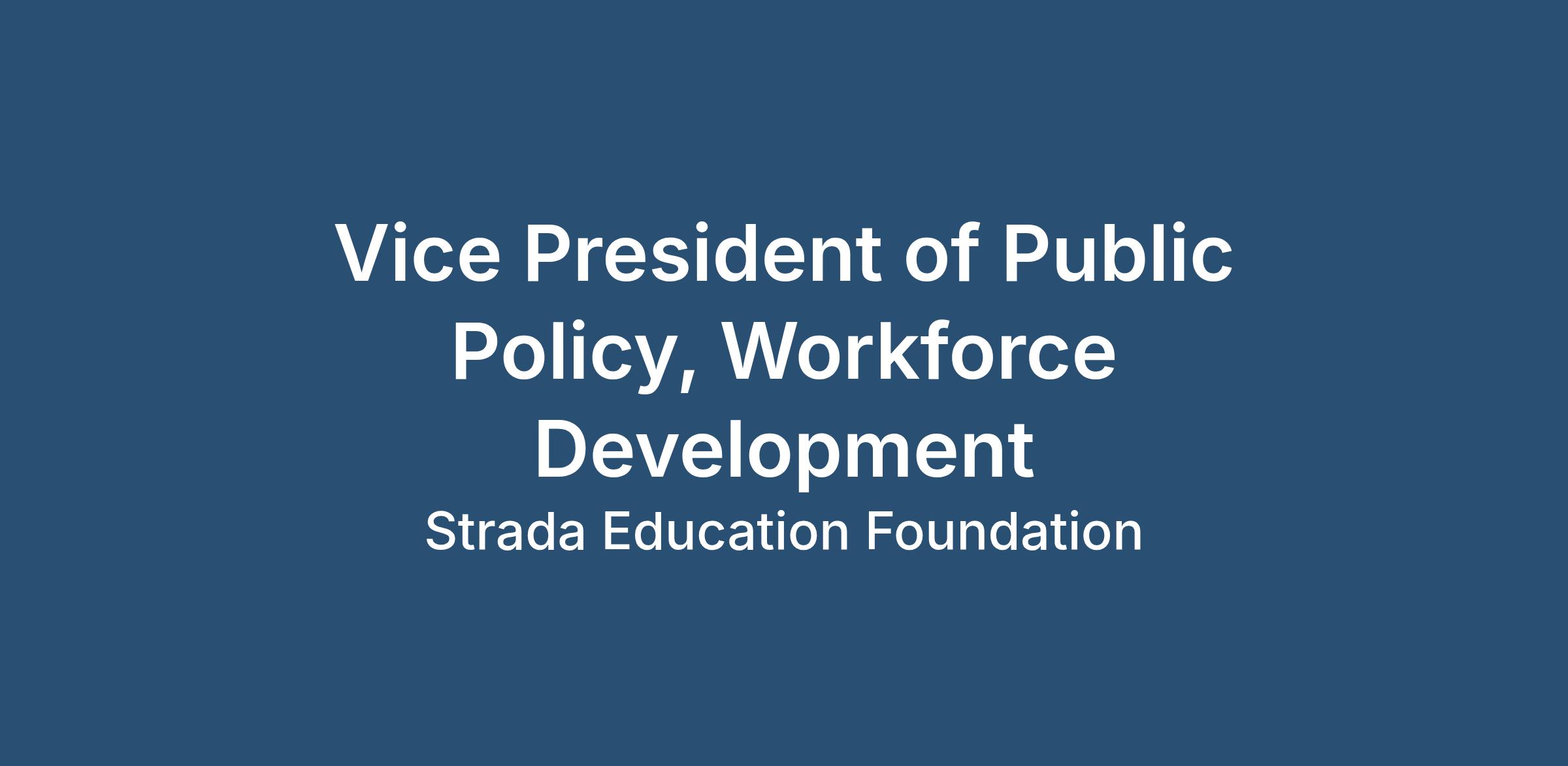 The Vice President of Public Policy for Workforce Development (VP) will join Strada Education Foundation’s Public Policy team to lead work-based learning and employer alignment policy development efforts and co-lead data efforts that drive ecosystem-level change in support of Strada’s mission and objectives. The VP operates as a senior individual contributor, serving as a subject matter expert who drives results primarily through direct policy analysis and development, alongside cross-functional influence. This role serves as a strategic bridge between the worlds of workforce systems (including employment data) and higher education to design policy options and positions to advance Strada’s priorities and support the execution of advocacy strategies at the state and federal levels. In addition to directly leading and executing significant policy development work, the VP will inherit a portfolio of existing grants with opportunities to establish additional partnerships that help advance policy and advocacy goals.