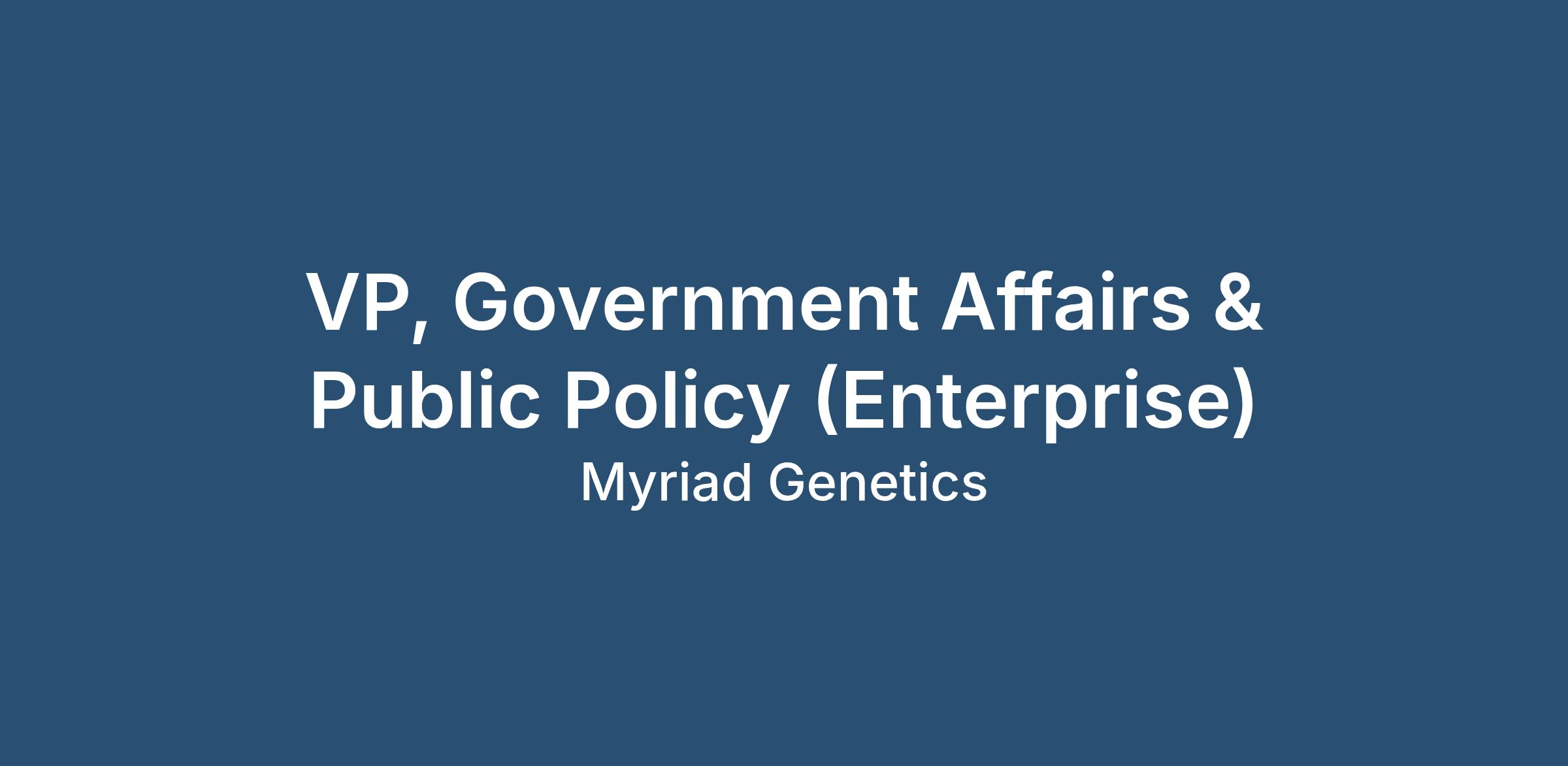 The VP, Government Affairs & Public Policy will lead Myriad’s enterprise-wide policy, government affairs, and advocacy strategy, integrating federal, state, and regulatory engagement to advance patient access, reimbursement, and appropriate regulation of the company’s product portfolio.