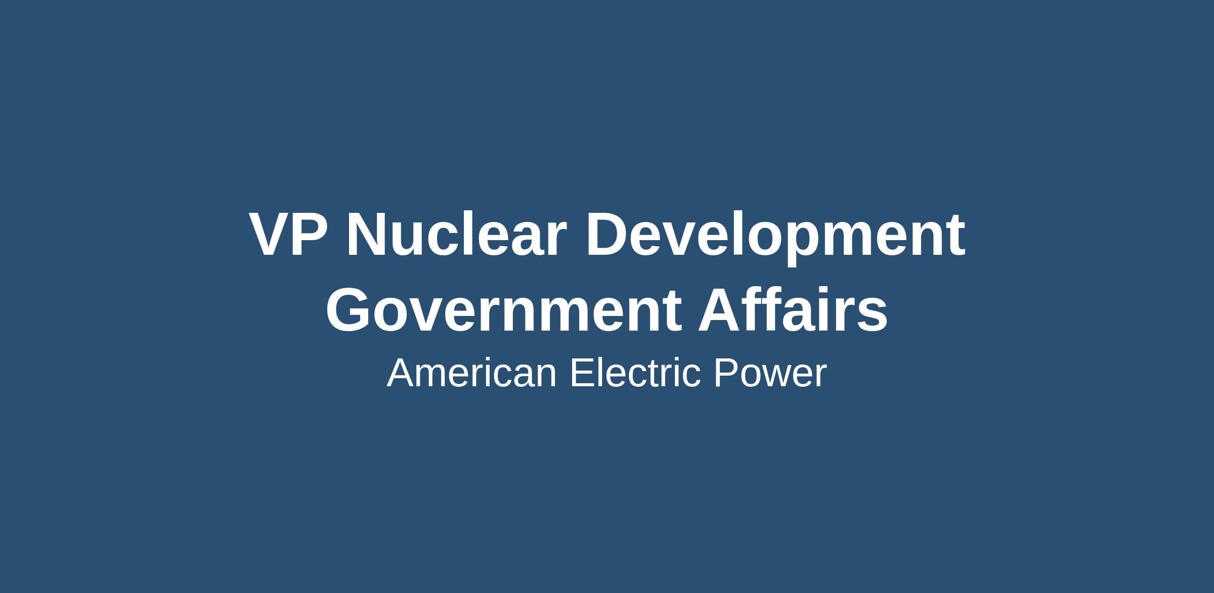 The Vice President Nuclear Development Government Affairs is a senior leadership role within AEP’s Nuclear Development organization, which is responsible for shaping and advancing the company’s legislative and regulatory strategy for new nuclear generation long term growth. This role provides the strategic legislative and regulatory vision, leadership, and execution needed to support the development and deployment of new nuclear generation, including next generation nuclear technologies, and ensures alignment across AEP’s regulated jurisdictions.