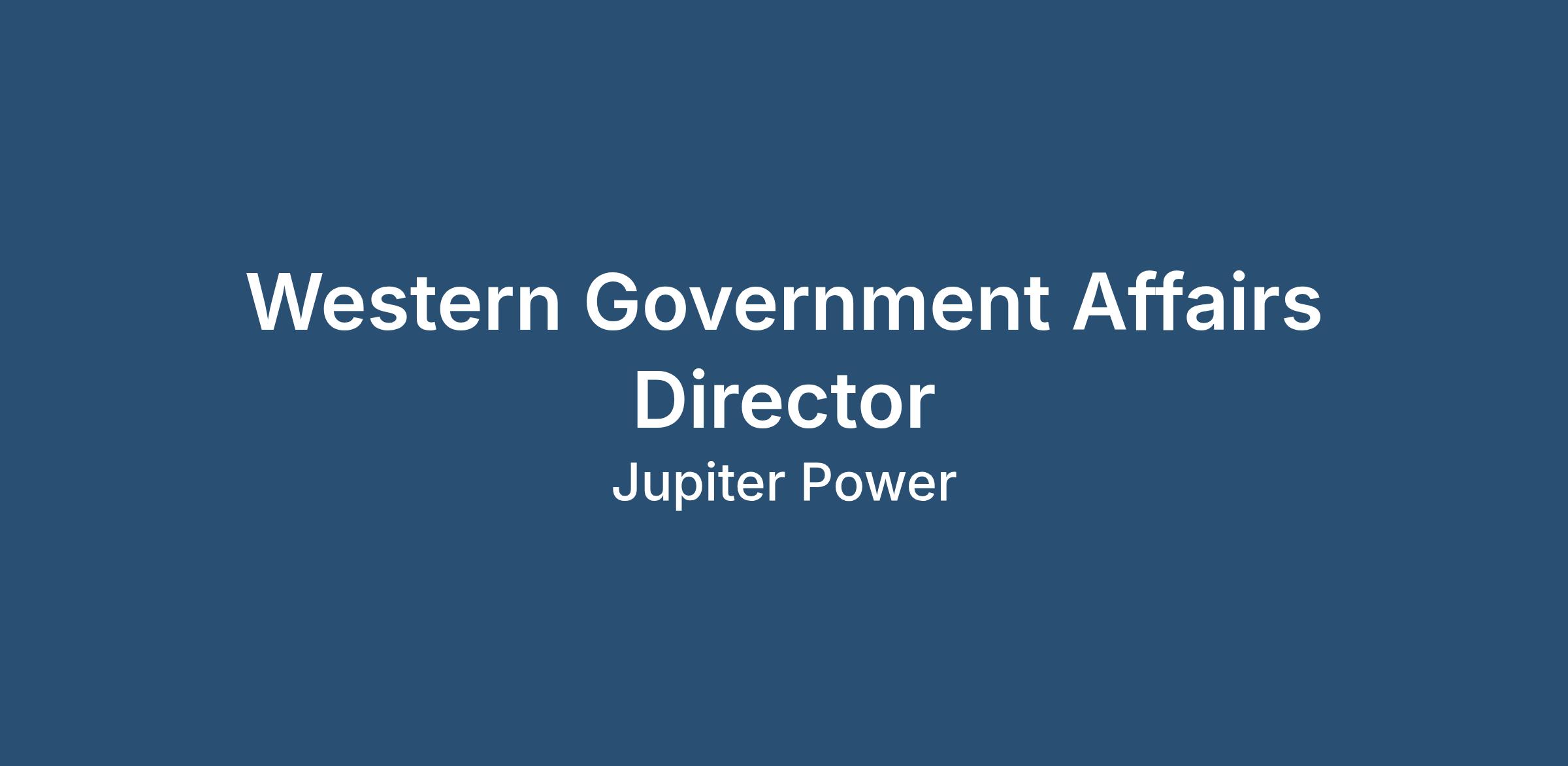 We are seeking a Western Government Affairs Director to join our Development Team. In this role, you will be responsible for developing and executing a comprehensive state policy strategy in the Western region that positions Jupiter’s significant development portfolio for success, including advancing favorable policies related to offtake opportunities and permitting. The successful candidate will be an experienced government relations professional with strong leadership, problem-solving, and energy policy expertise. This individual will have experience building broad-based coalitions for clean energy initiatives and a proven track record of advancing multifaceted policy agendas across several jurisdictions at the state and local levels. The candidate will also be skilled at marshalling the talent of internal and external teams to execute successful project campaigns.